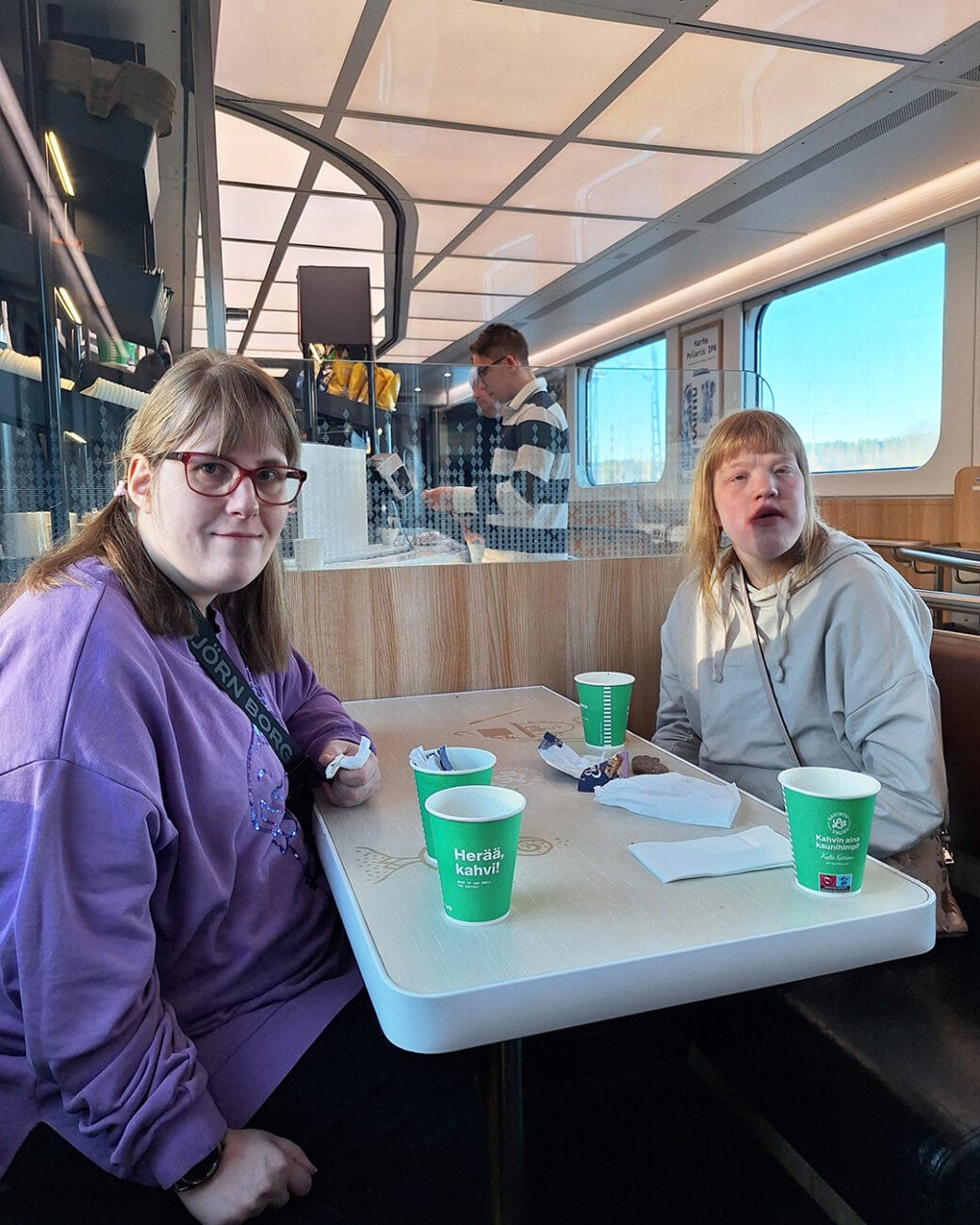 Lähdetäänkö Tampereelle Osallisuusmessuille huhtikuussa yhen yön reissuun? Lähetään vaan, mitä siellä messuilla on? En tiiä, saa nähä, mennään ottamaan selvää. Ei muuta kuin mahdollisuuksia selvittämään esihenkilö Anna-Maijalta – ja vihreää valoahan sieltä tuli. Reissukaverit Janika ja Katri olivat tiedon saatuaan heti täysillä mukana.